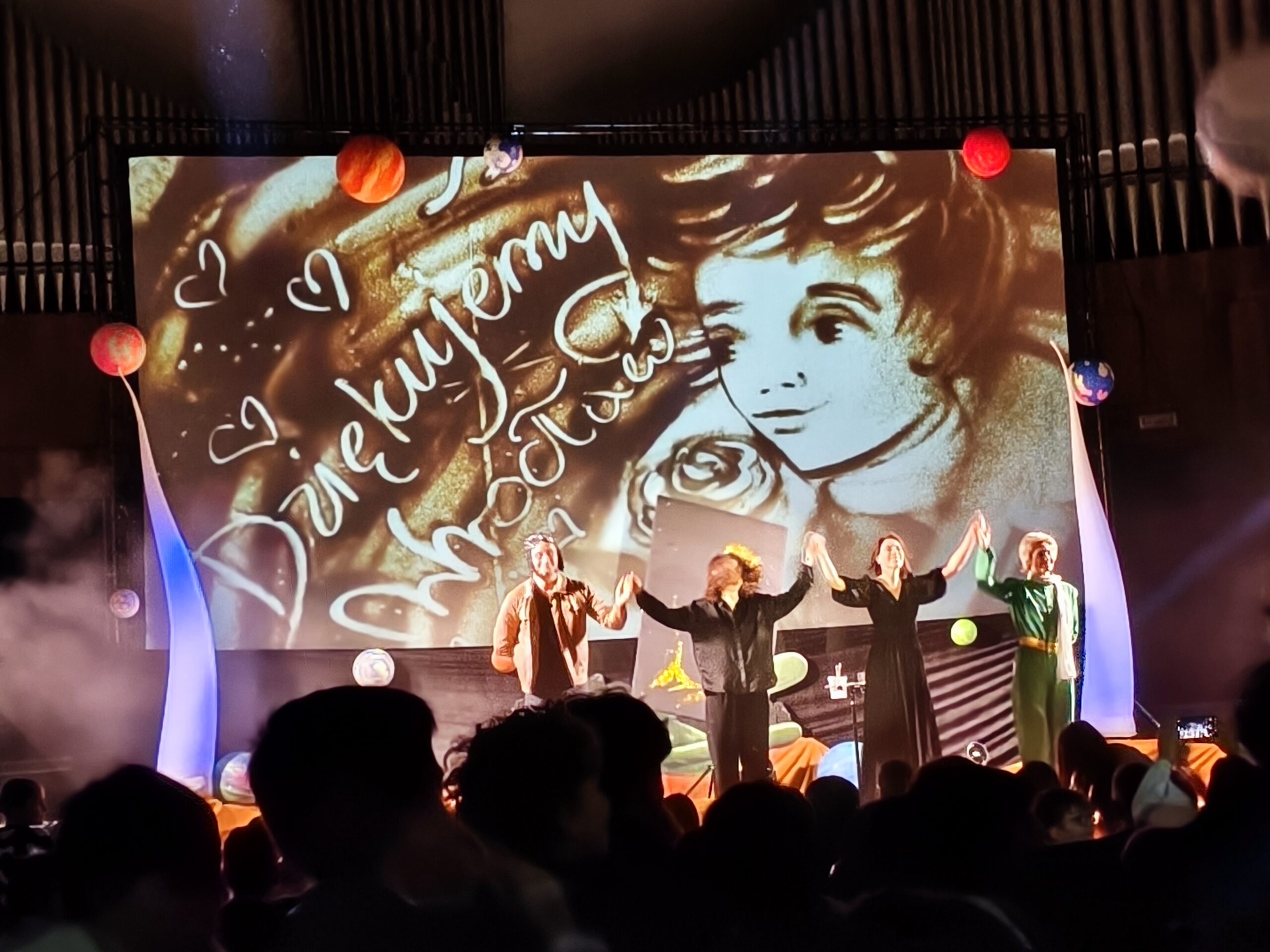 Przedstawienie okazało się magiczną podróżą pełną emocji – połączenie gry aktorskiej, muzyki oraz malowania piaskiem i światłem stworzyło zachwycający klimat. Uczestnicy mogli na żywo obserwować, jak z obrazów z piasku rodzą się kolejne sceny z książki Antoine’a de Saint-Exupéry’ego, pokazujące piękno przyjaźni, odpowiedzialności i patrzenia sercem.